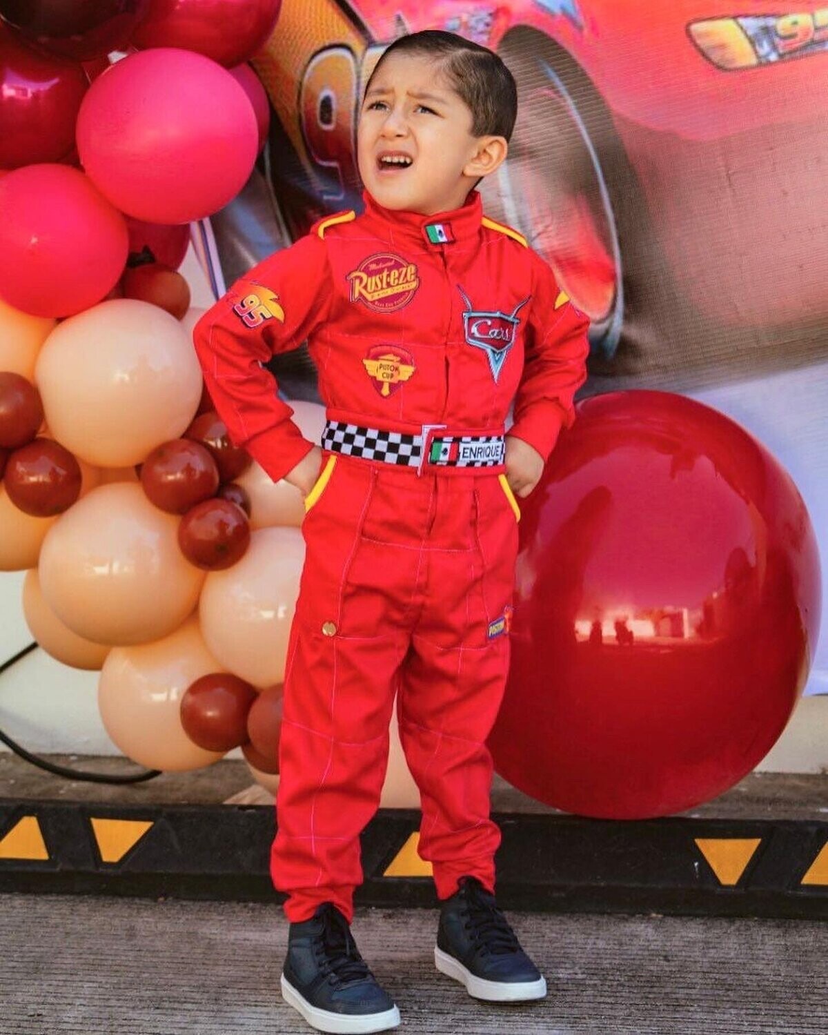 Adaptamos la idea un personaje clásico de Pixar en este traje completo con el diseño de líneas costuradas en toda la prenda, parches sublimados y bordados colocados al frente y la espalda. Puedes personalizarlo con el nombre y la edad de tu hijo.